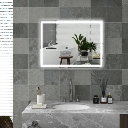 Dimmable LED Bathroom Mirror 80x60cm, Anti-Fog with Memory Function
