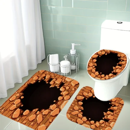 This 3pcs Bathroom Mat And Rug Set Features a Retro Orange-Brown