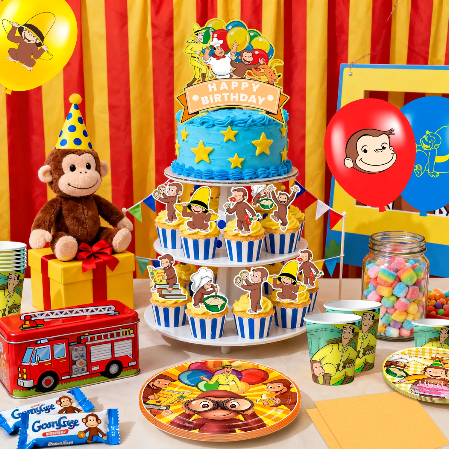 George Monkey birthday party supplies for kids include George Monkey balloons, George Monkey birthday banners, George Monkey cake toppers and other George Monkey themed party decorations, which can easily meet your decoration requirements and free you from the stress of George Monkey party planning.