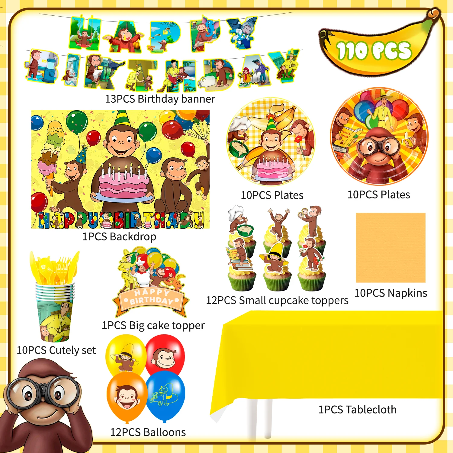 110 Pcs George Monkey Birthday Decorations&Tableware