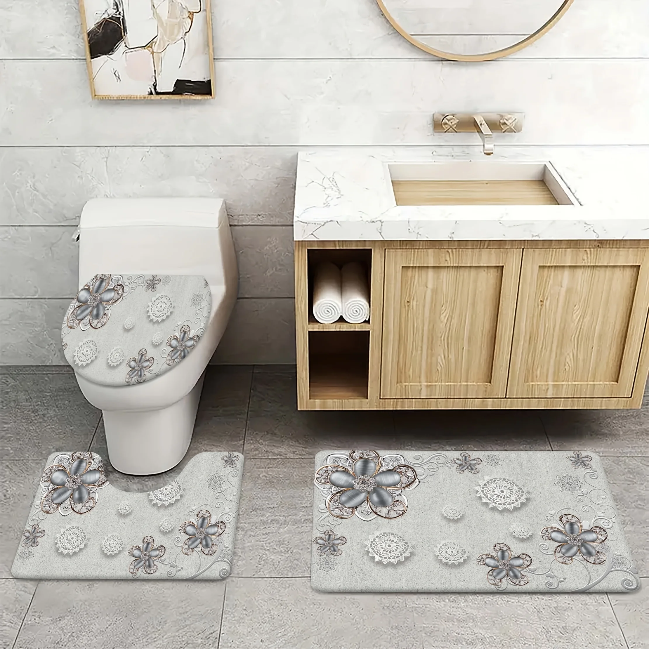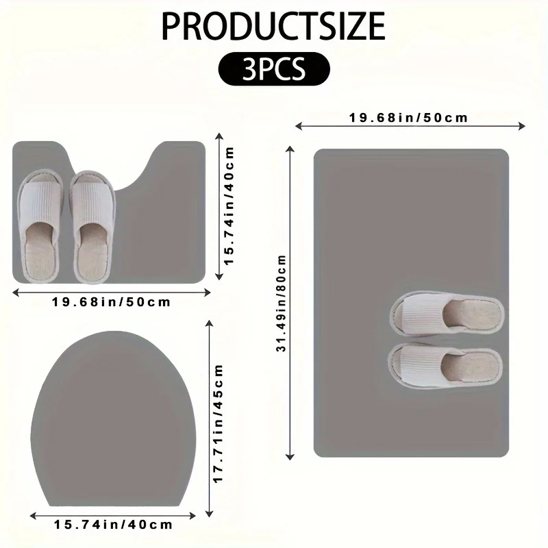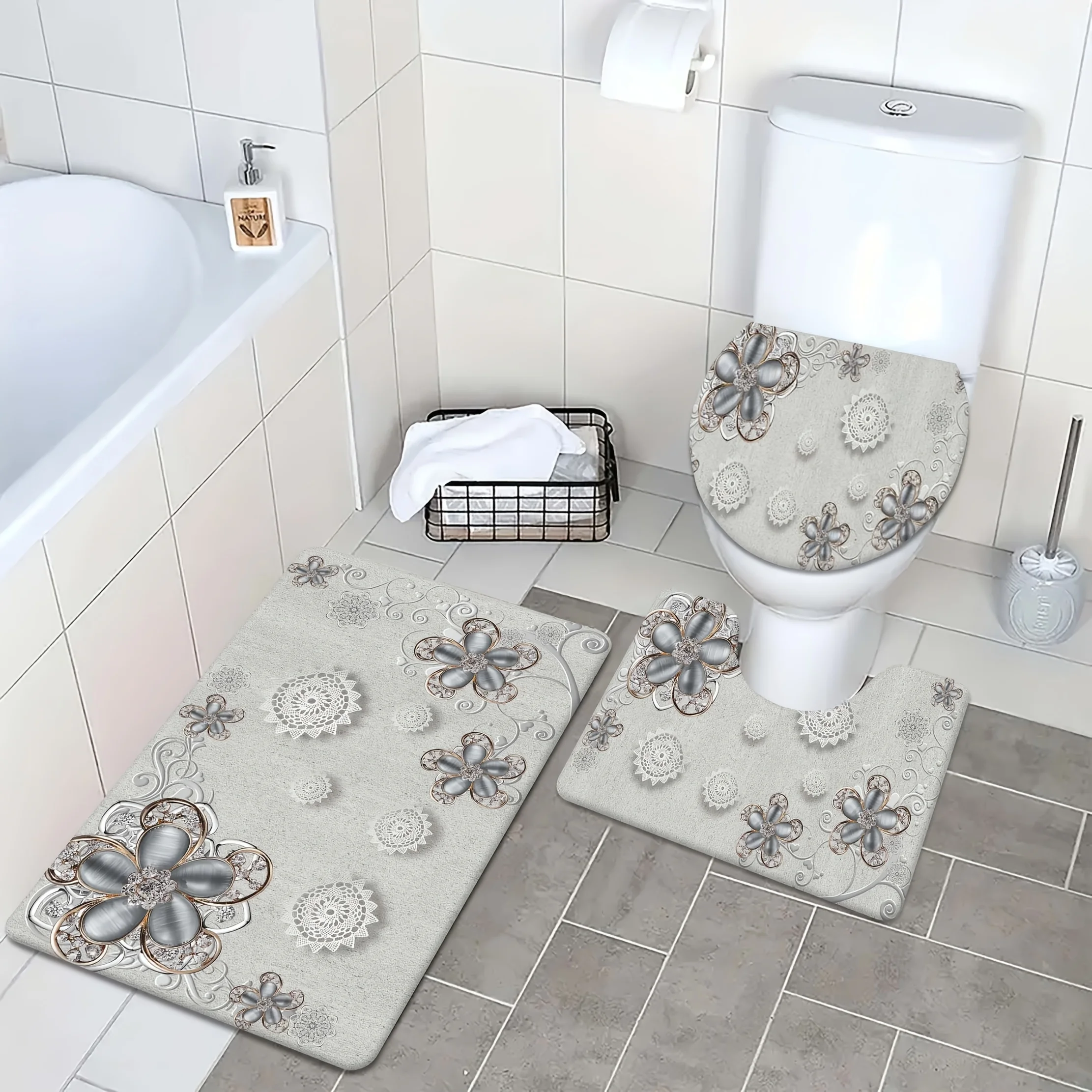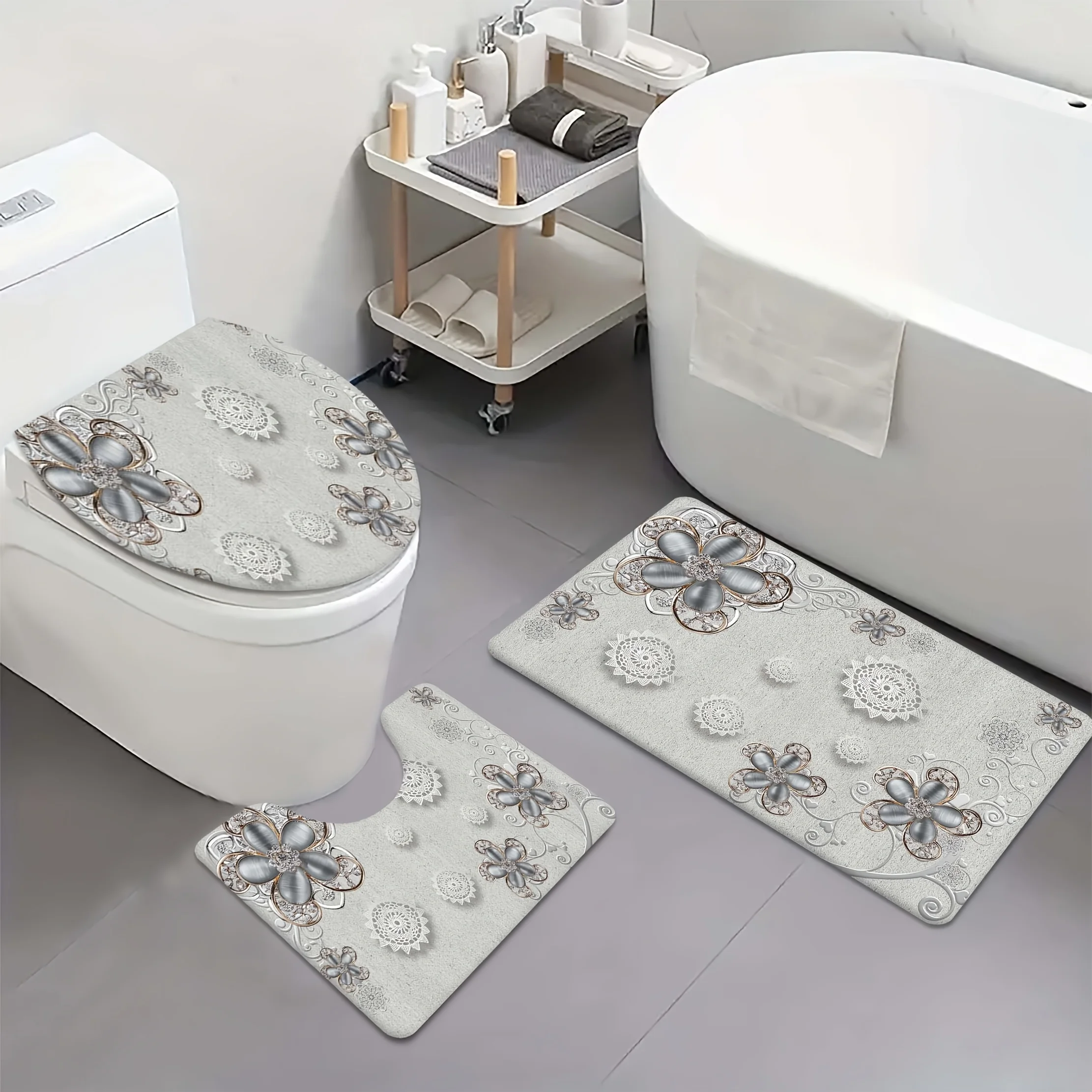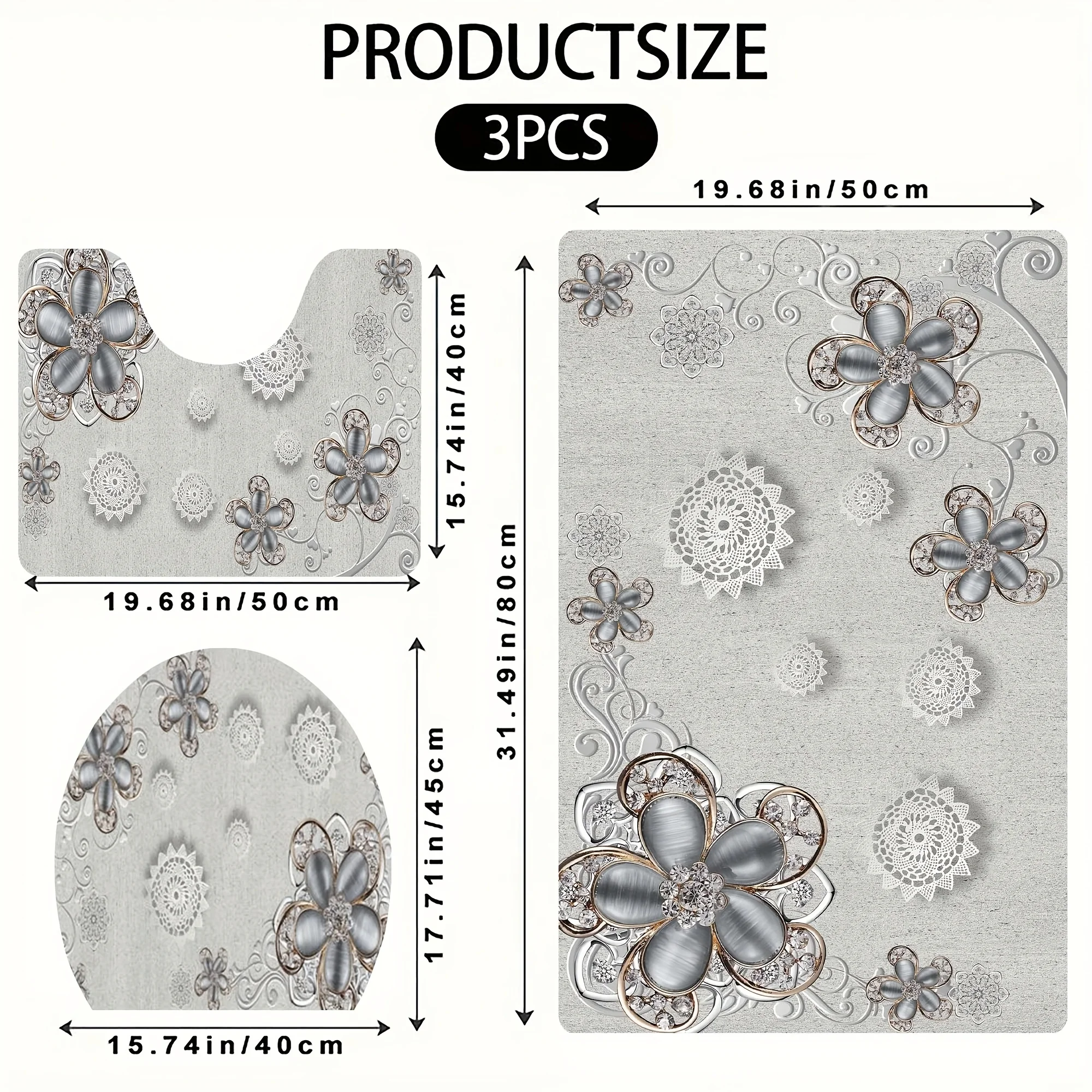 3-Piece Floral Bath Mat Set – Soft Flannel Non-Slip Bath