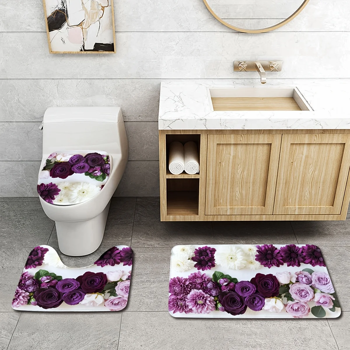 3-piece set bathroom U-shaped toilet mats absorbent