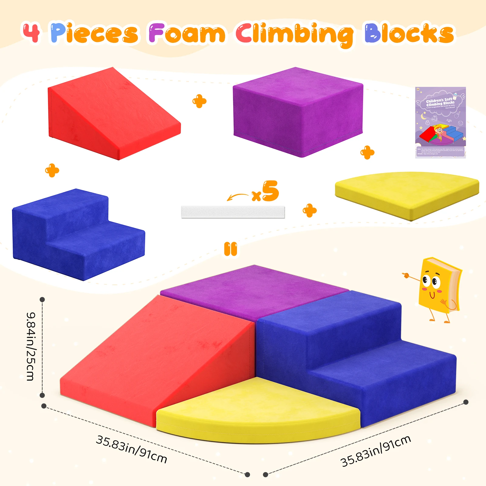 4 Pieces Soft Foam Climbing Blocks Suede Cover Safe Kids