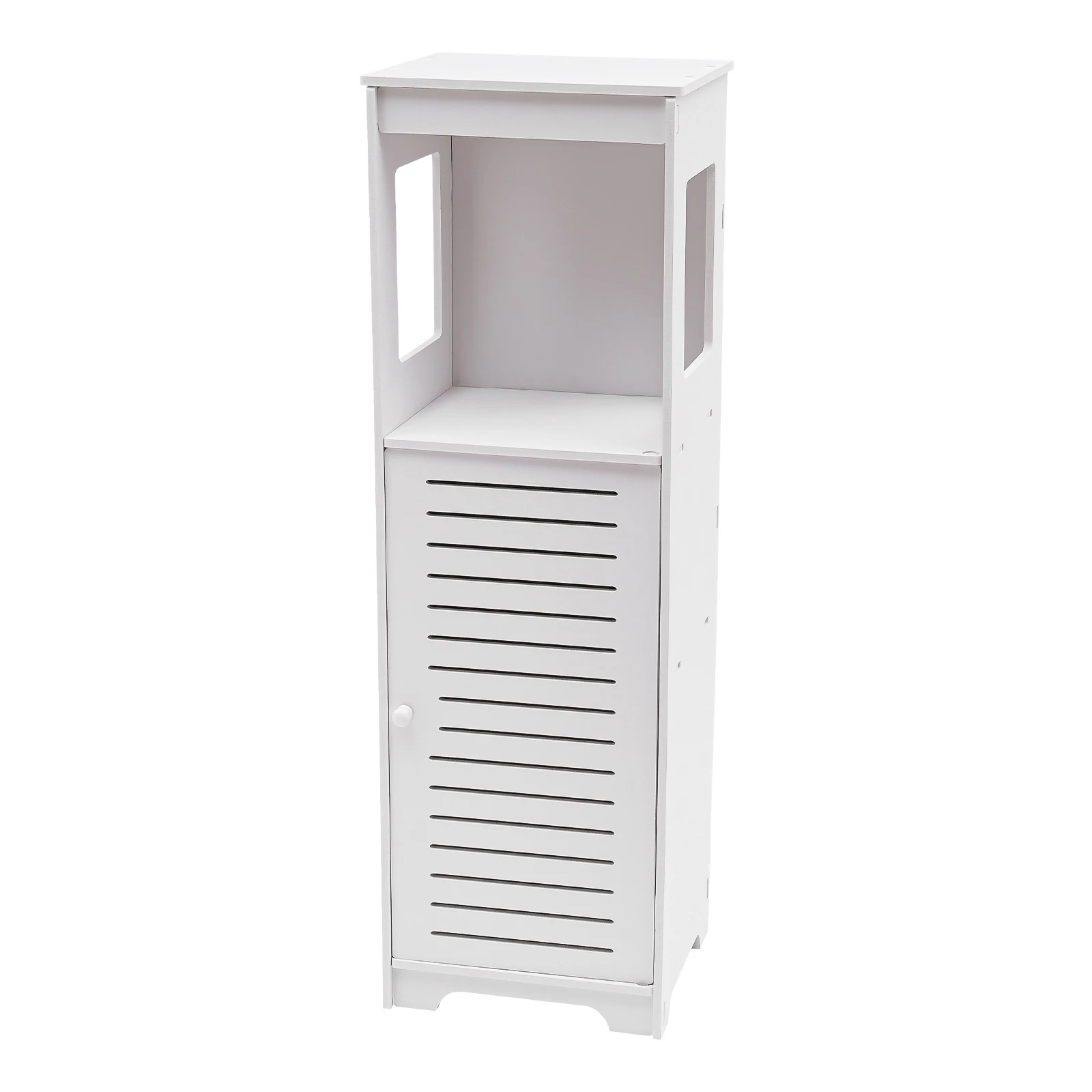 4-Tier Bathroom Storage Cabinet (28*25*90cm) – Waterproof PVC, Ventilated Door & Large Capacity! Holds toiletries, easy to install/clean—modern white design fits bathroom/bedroom, space-saving!