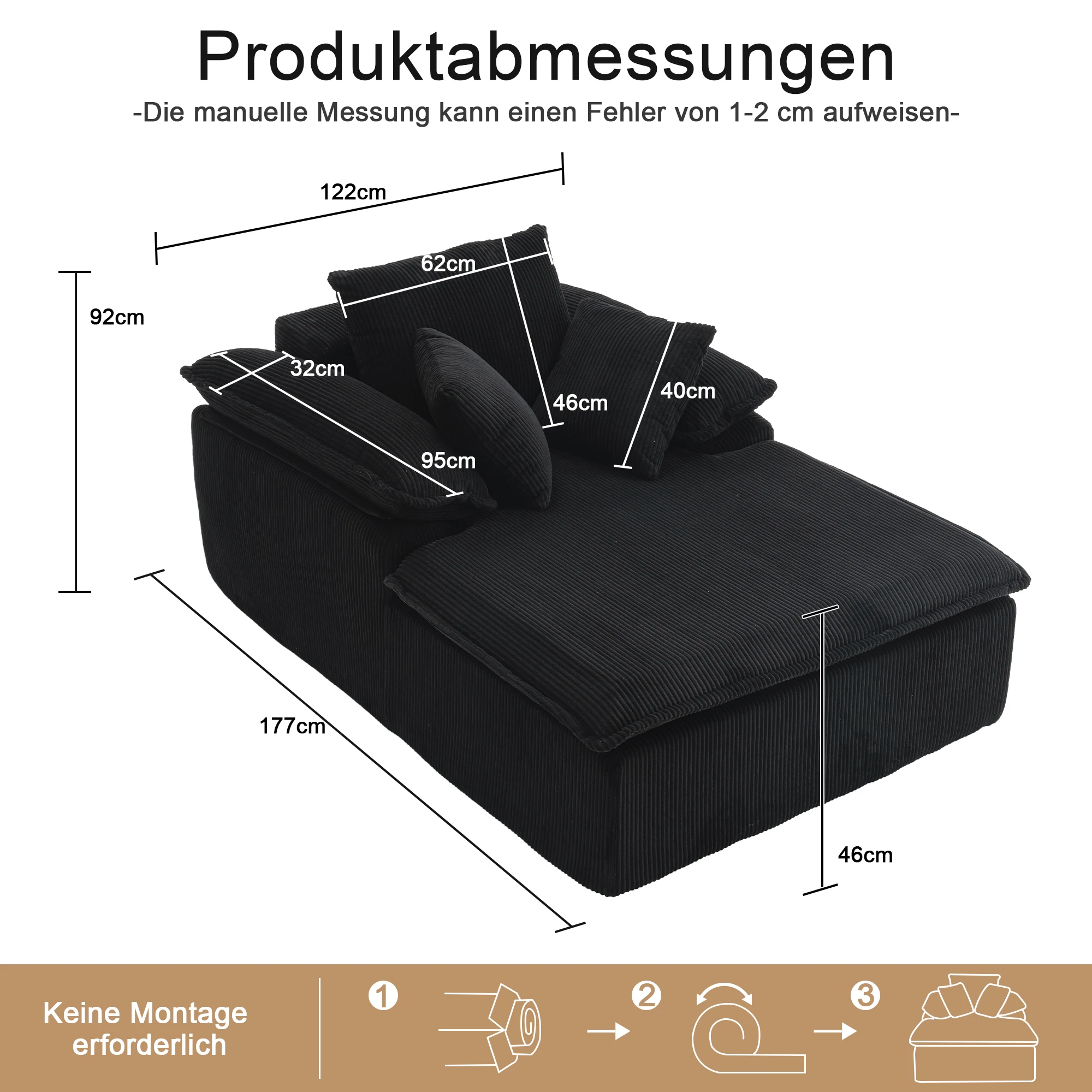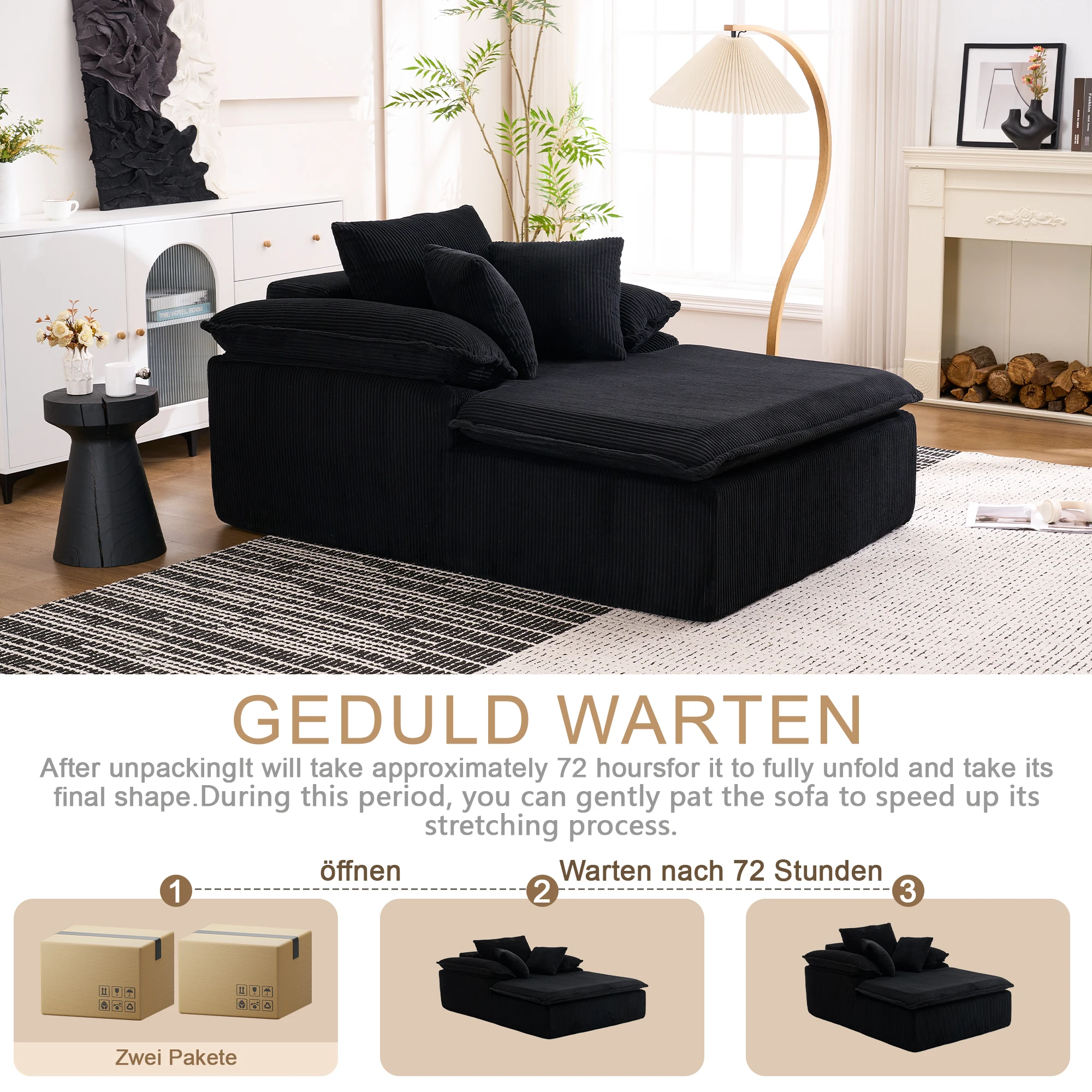 3. Important Note: After removing the package, please wait for 72 hours to allow the sofa to fully expand and return to its natural shape. This will ensure that the sofa achieves the best level of softness and comfort. For the best results, please wait for a period of time before using it. Additionally, gently tapping the sofa (without the need for tools or installation) will speed up its expansion process.