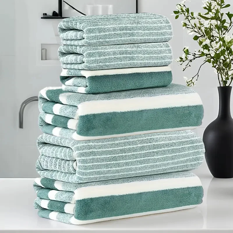 6 Pcs Set of Coral Fleece Material, 3 Bath Towels, 3 Washcloths Set, Soft and Comfortable, Suitable for Shower, Fitness, Hotel