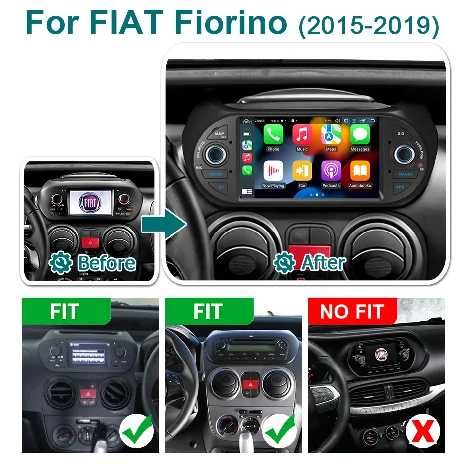 7″ Screen Android 15 Auto Carplay Bluetooth Car Radio for Fiat Fiorino Citroen Nemo Peugeot Bipper 2015-2019 Multimedia Player
