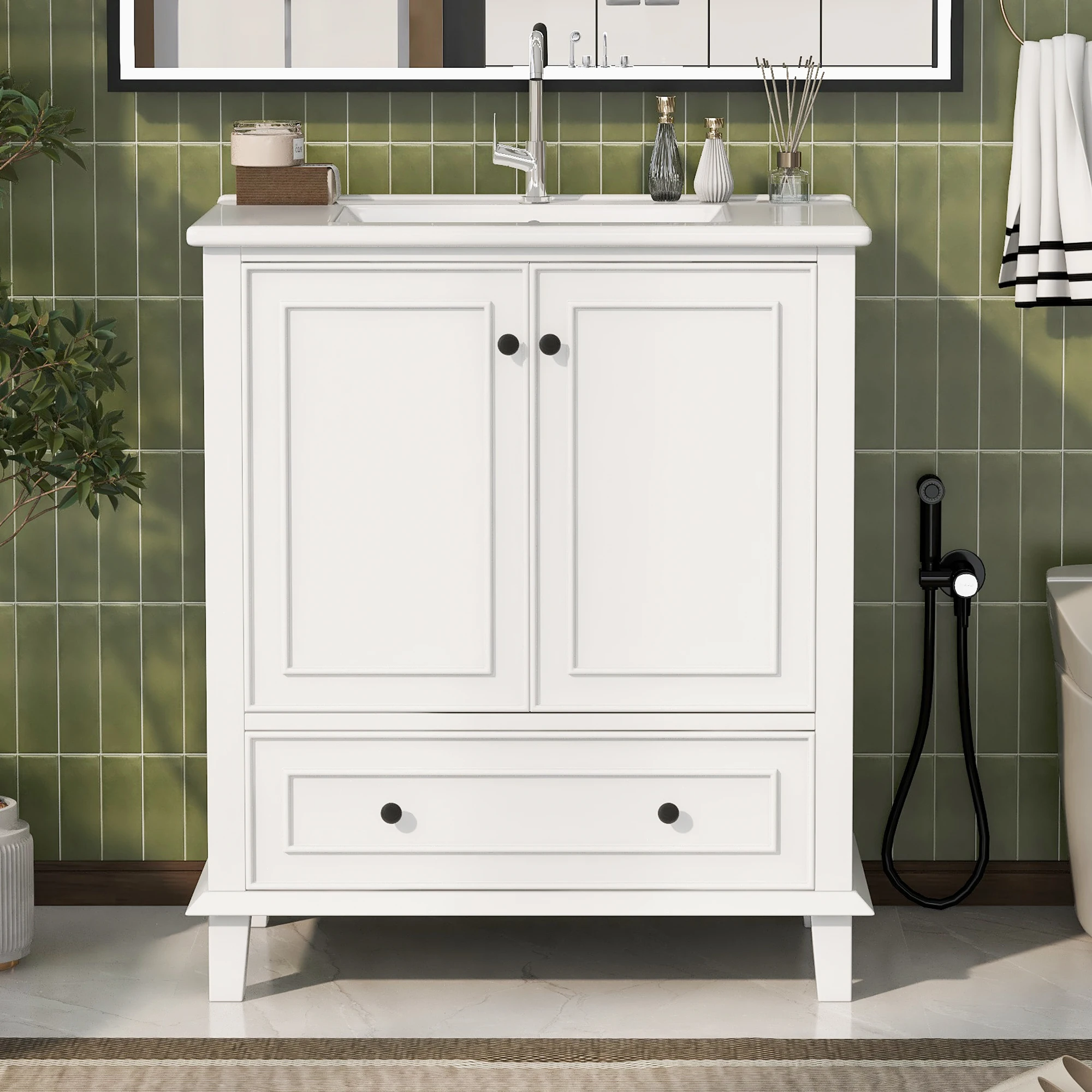 3. Ample Storage Space: Equipped with two cabinet doors and a smooth-gliding drawer, each door features a shelf, and the cabinet interior includes an adjustable shelf, providing ample storage space for bathroom essentials and keeping your bathroom clean and organized.