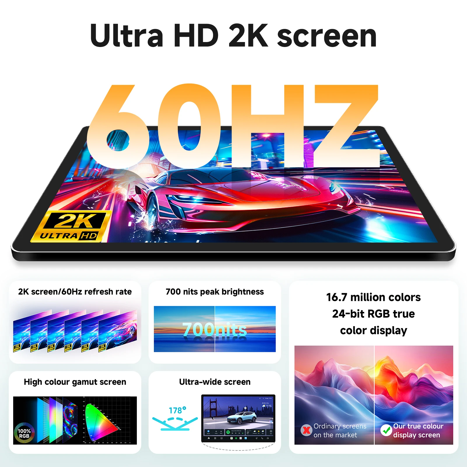 - Screen resolution: 2K Screen and 60HZ refresh rate