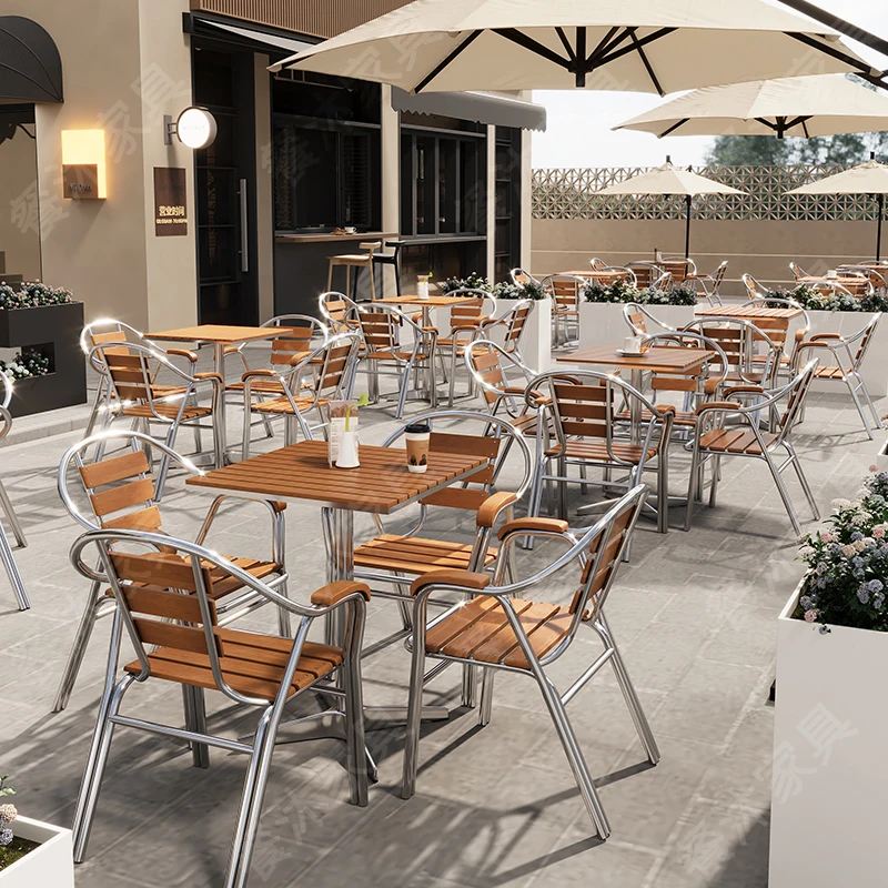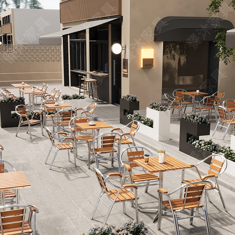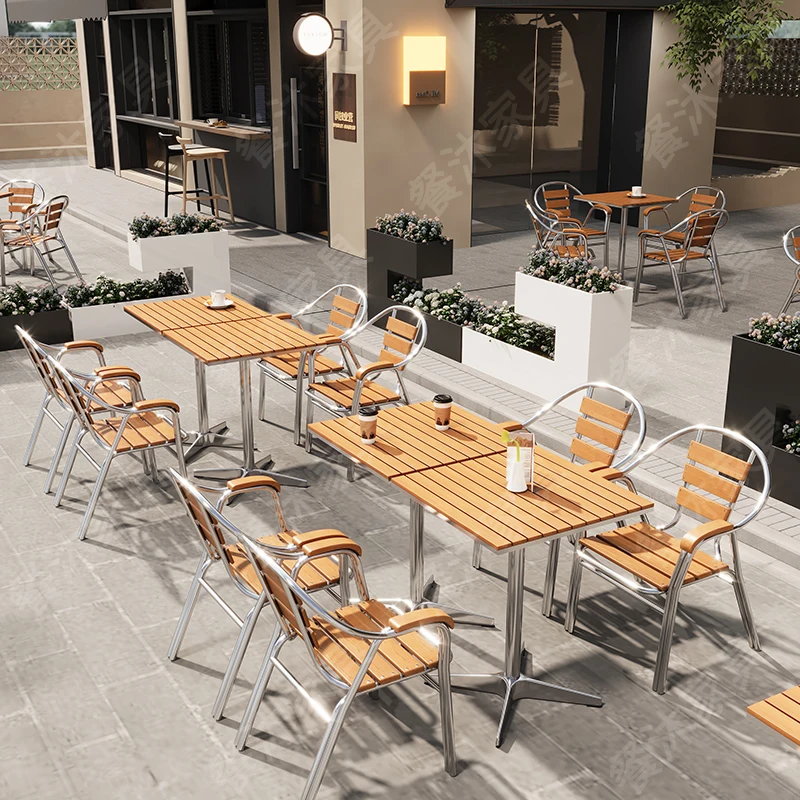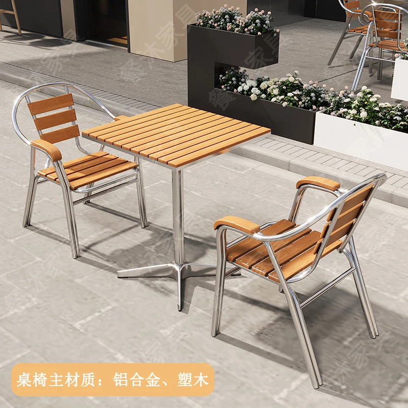 Commercial Outdoor Bistro Set Plastic Wood Table Aluminum Chairs