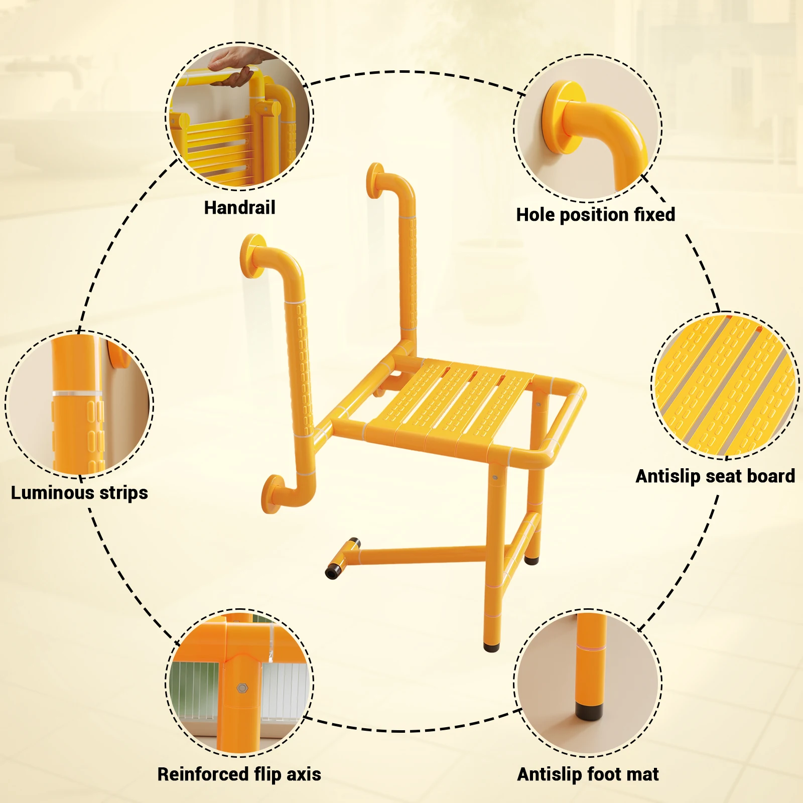 Folding Shower Seat Wall Mounted with Grab Bar, Stainless Steel Fold Down