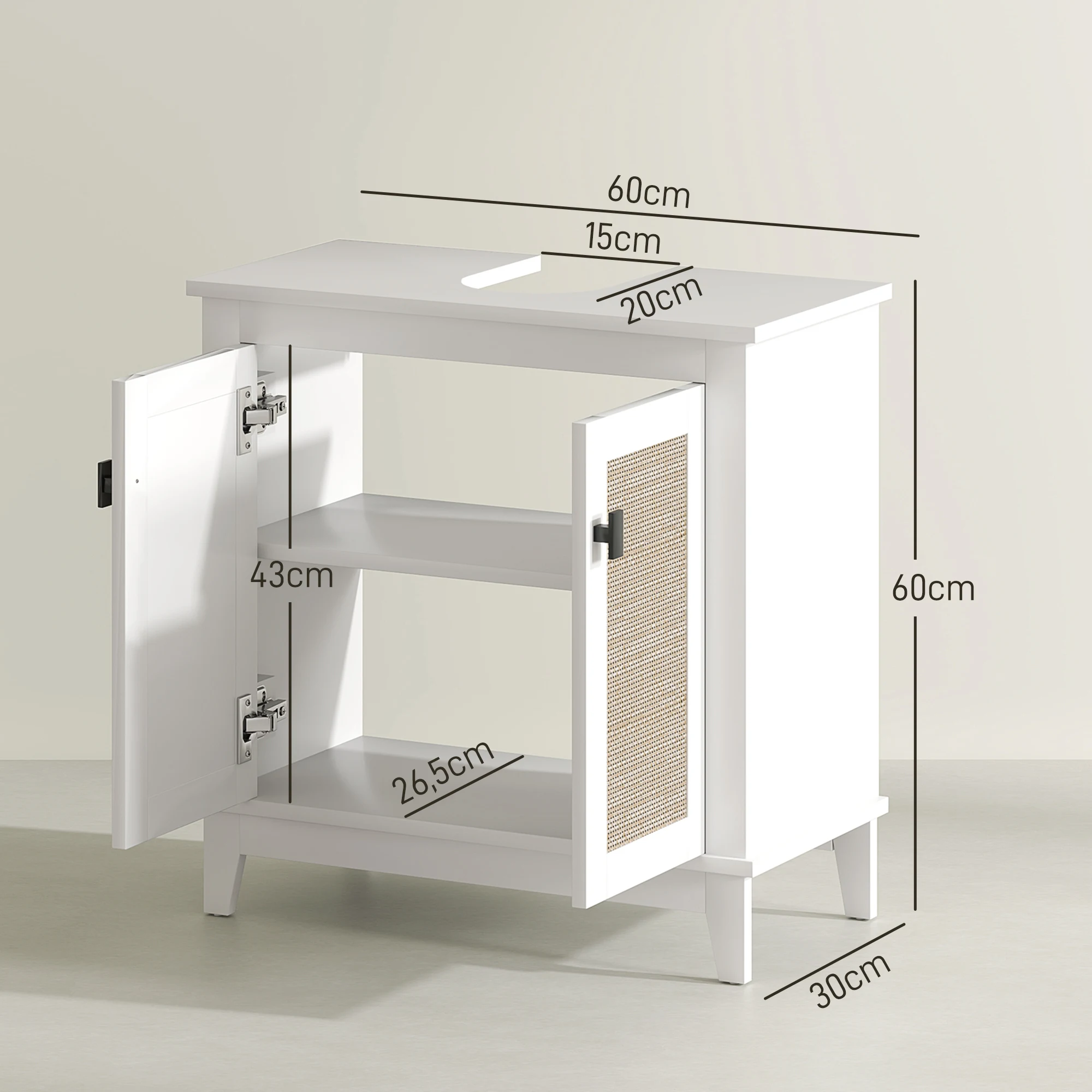 Features:● This sink cabinet features a u-shaped cutout, suitable for sinks up to 57×28 cm