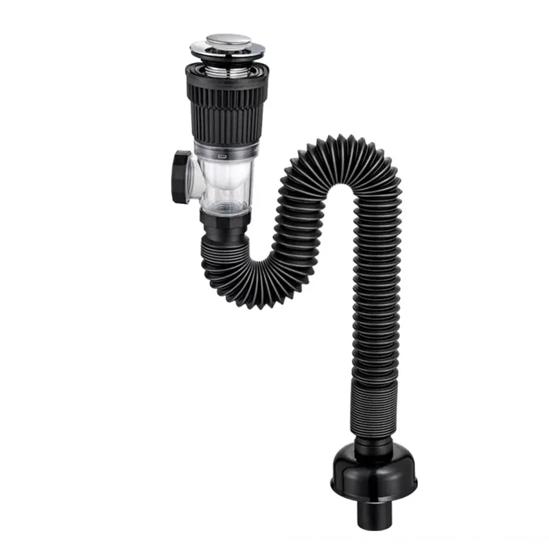 Luxury Bottle Trap Brass Round Siphon Oil Rubbed Bronze Black P-TRAP Bathroom Vanity Basin Pipe Waste With Pop Up Drain WF-6920