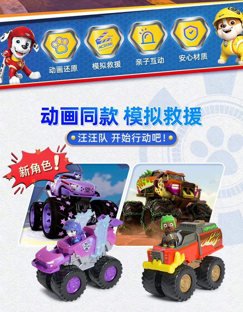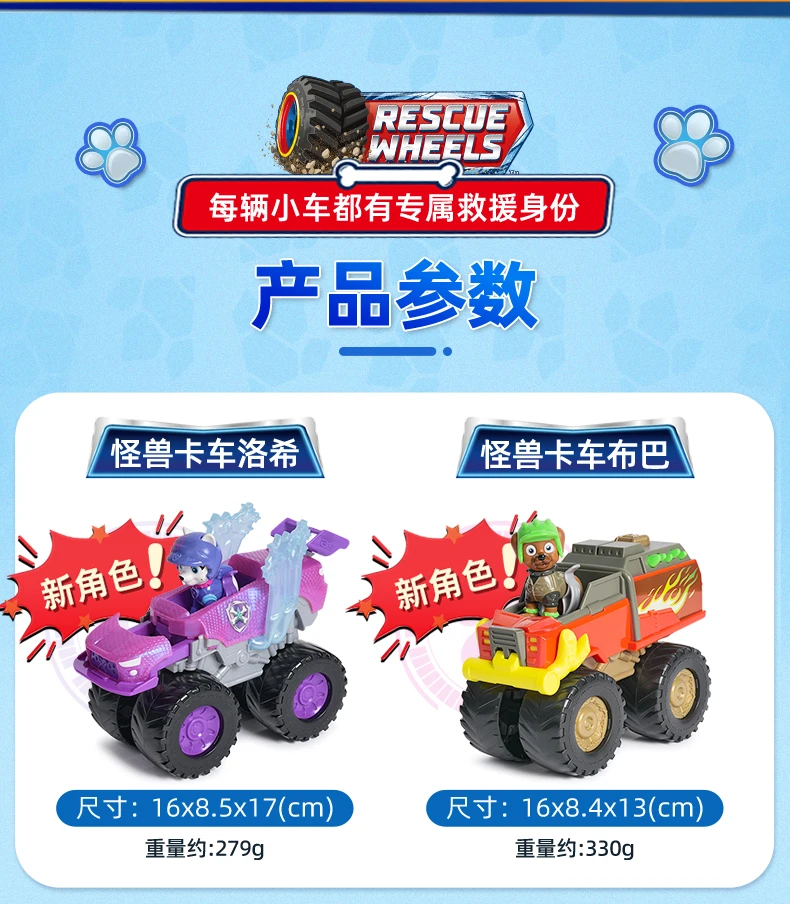 Original Paw Patrol Boomer Roxi Rescue Wheels BIG WHEELED TOY TRUCK with Collectible Action Figure Kids Toys for Boys & Girls