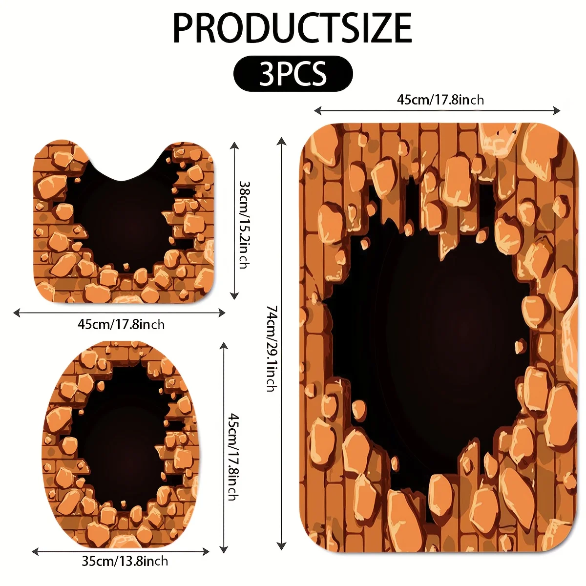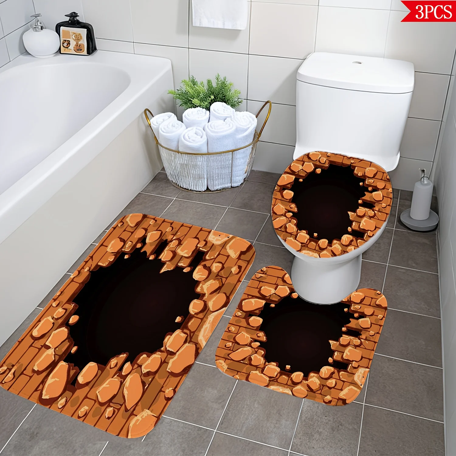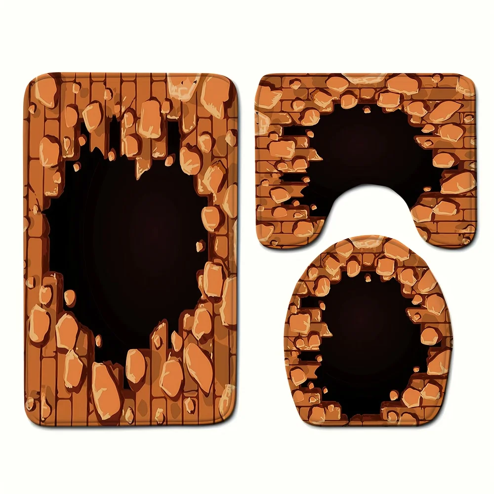 This 3pcs Bathroom Mat And Rug Set Features a Retro Orange-Brown