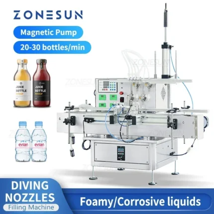 ZONESUN ZS-DTMP4AL Benchtop Automatic Four Injectable Heads Foamy Soap Liquid Essential Oil Drink Juice Bottle Filling Machine